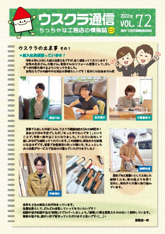 ウスクラ建設は、地域とともに育つ「もうひとつの暮らしづくり」を進めています。