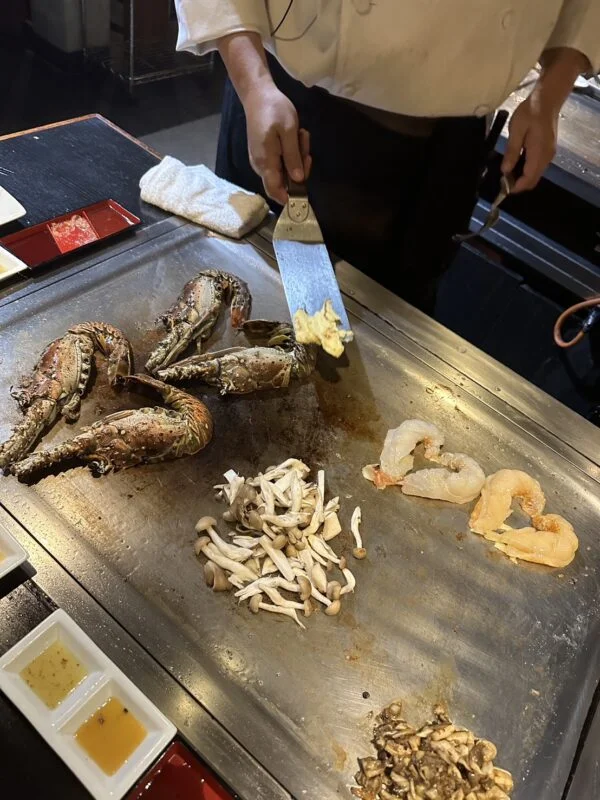 アメリカンビレッジの近くにある鉄板焼き!これはエビを♡にしてくれた時の写真です♡