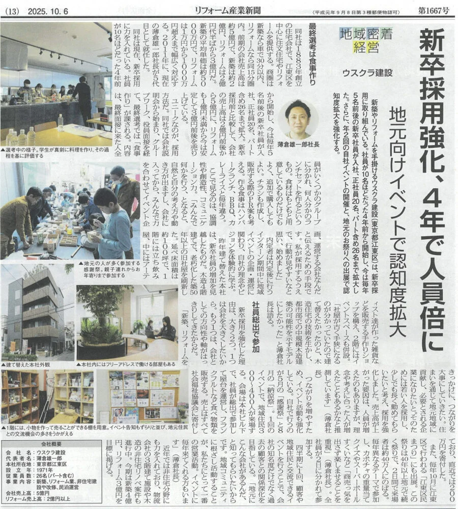 【リフォーム産業新聞】に弊社を取り上げて頂きました。
