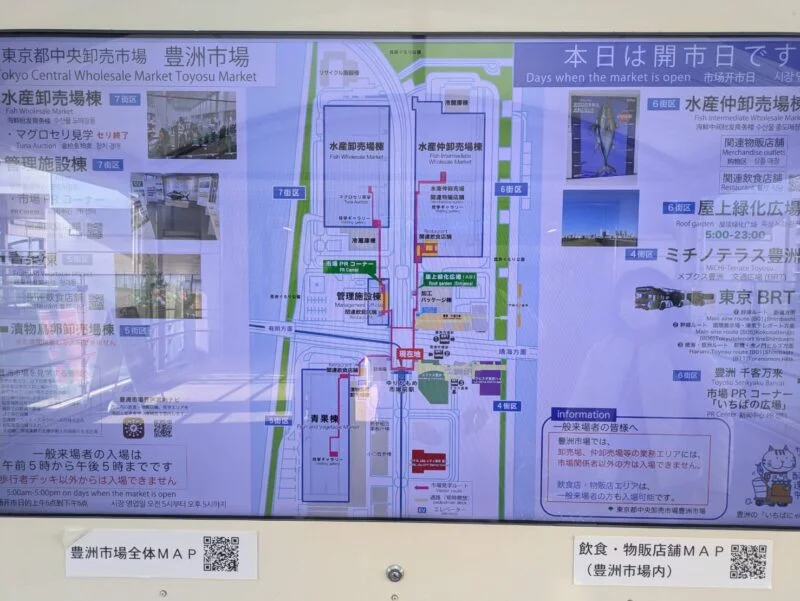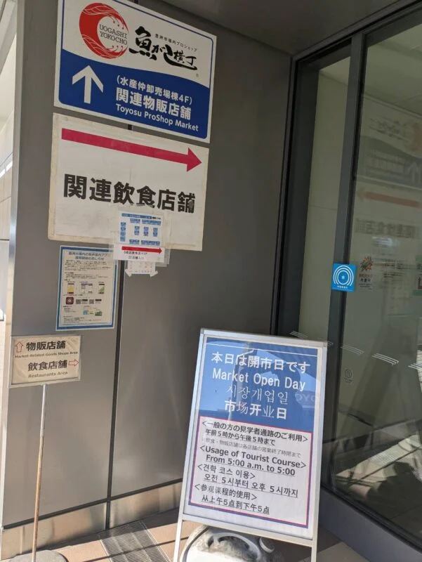 ゆりかもめの市場前駅から渡り廊下で市場へ行きます。