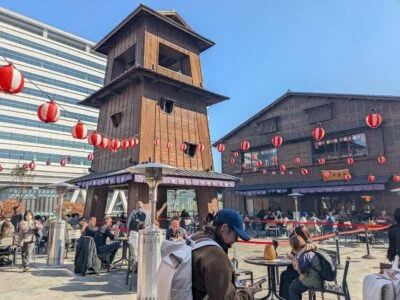 観光名所の千客万来を横目に通り過ぎ・・・先ずは朝ごはん!