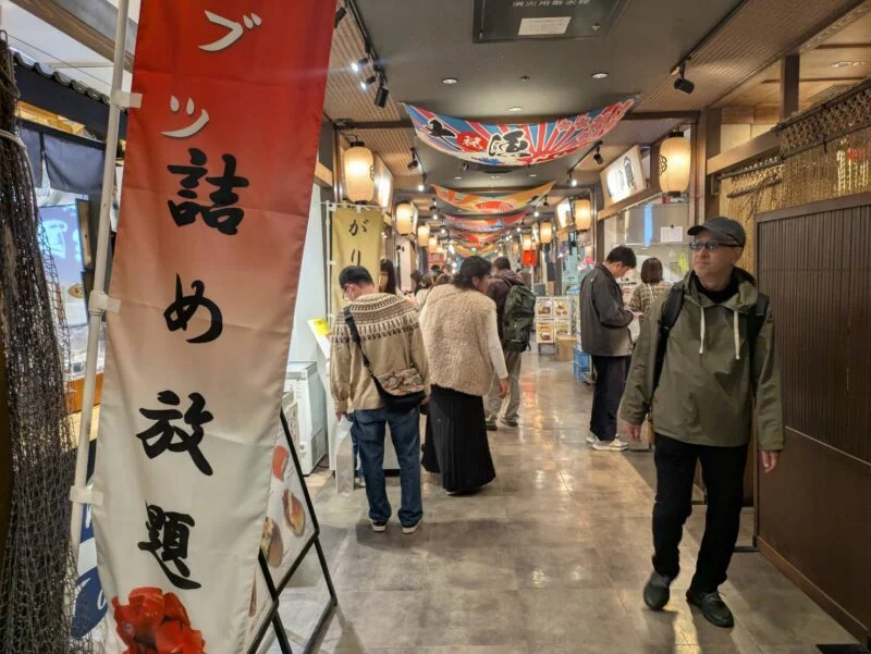 千客万来はなんでも高いのでモチロン市場の魚がし横丁で朝食です。 市場の中にも沢山の食べ物屋さんがあります。
