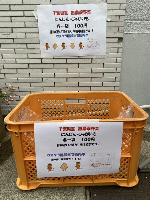 今日から弊社の敷地内にて無農薬のお野菜販売が