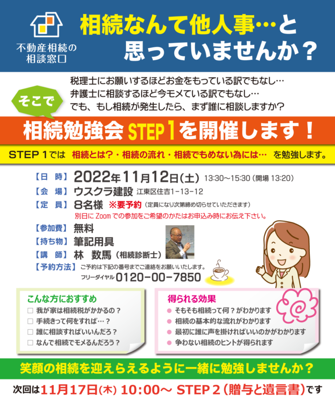 【終了しました】11月12日(土)に【相続勉強会】を開催いたします
