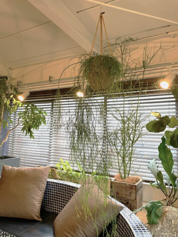 サボテン科の仲間は、天井からソファーの座面まで届きそうな勢いです。