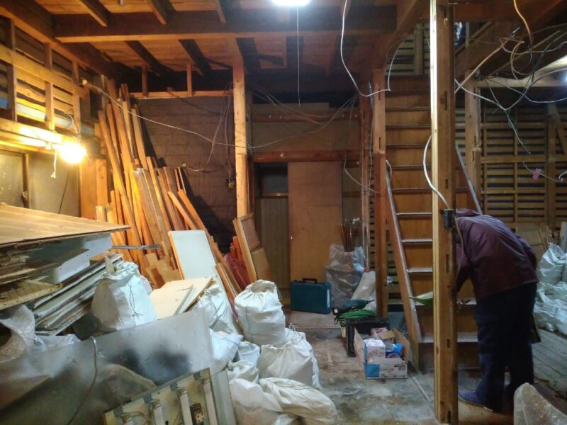 そしてよくわからないまま内装の解体が始まり・・・私も大工研修のテイで解体職人になり廃材やガラの搬出を手伝い・・・