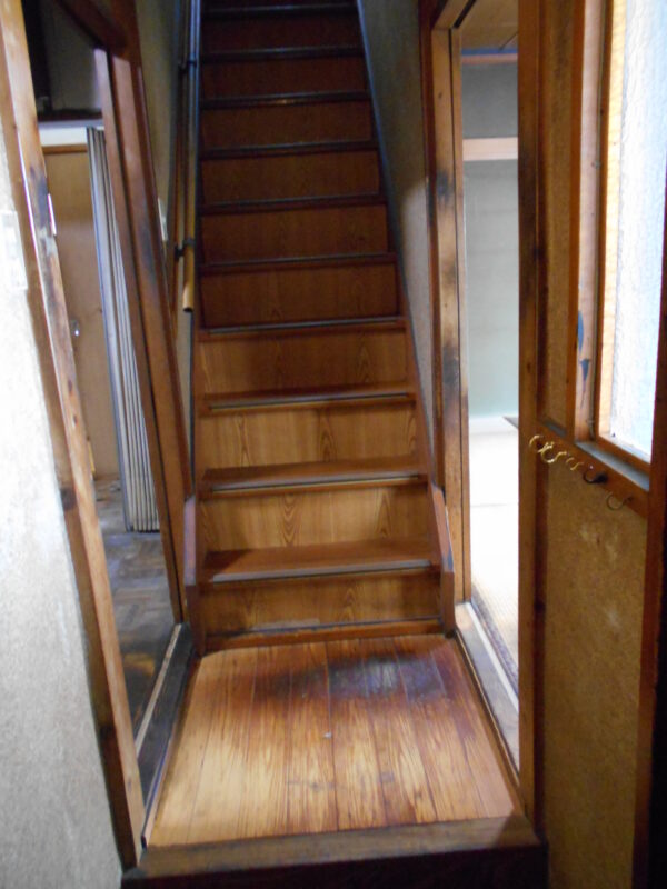 まずカビ臭いっ!玄関は半畳も無く、とてつもなく急な2階へと続く階段が目の前に現れて・・・