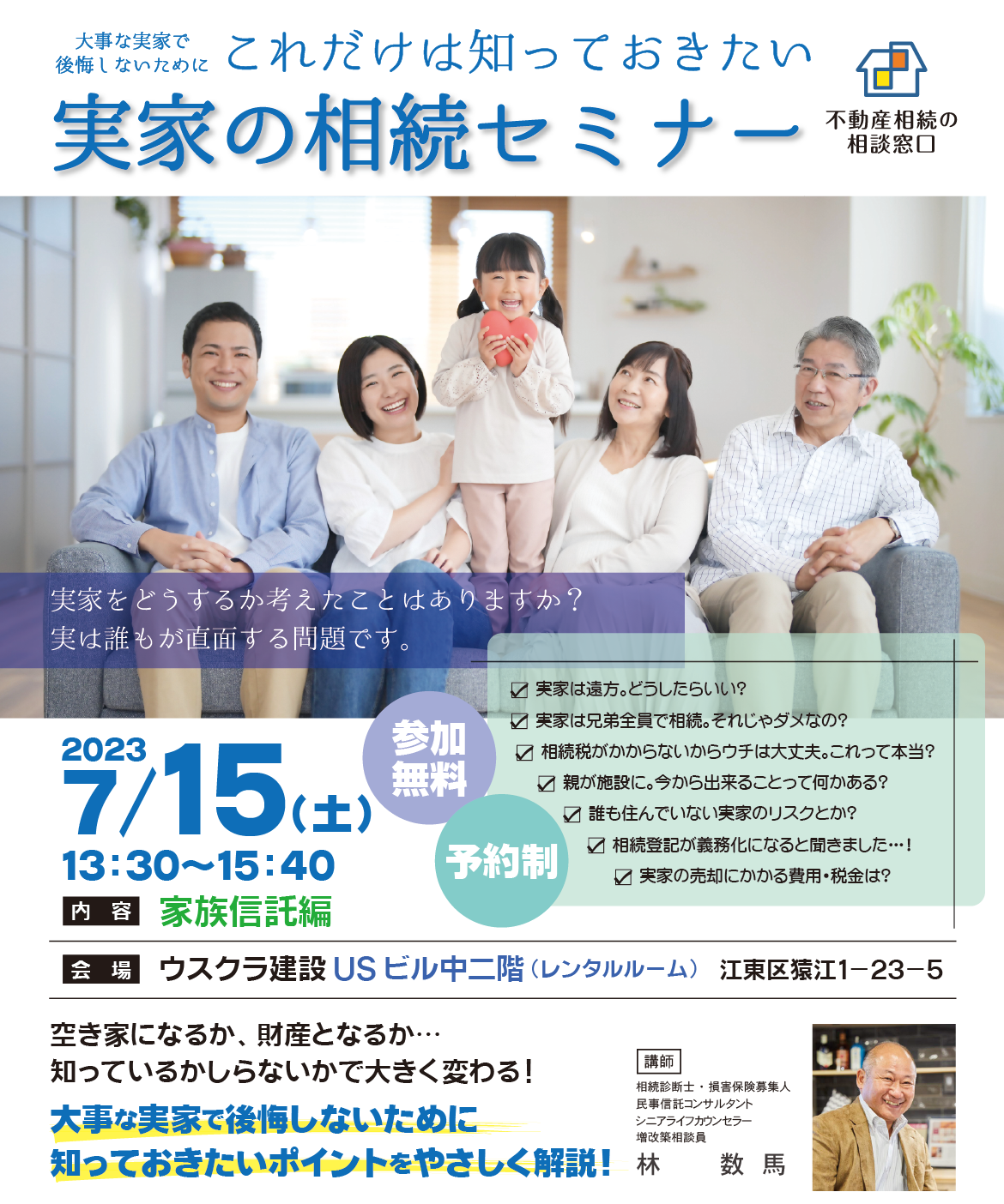 【終了しました】7月15日(土)に【実家の相続セミナー】を開催いたします