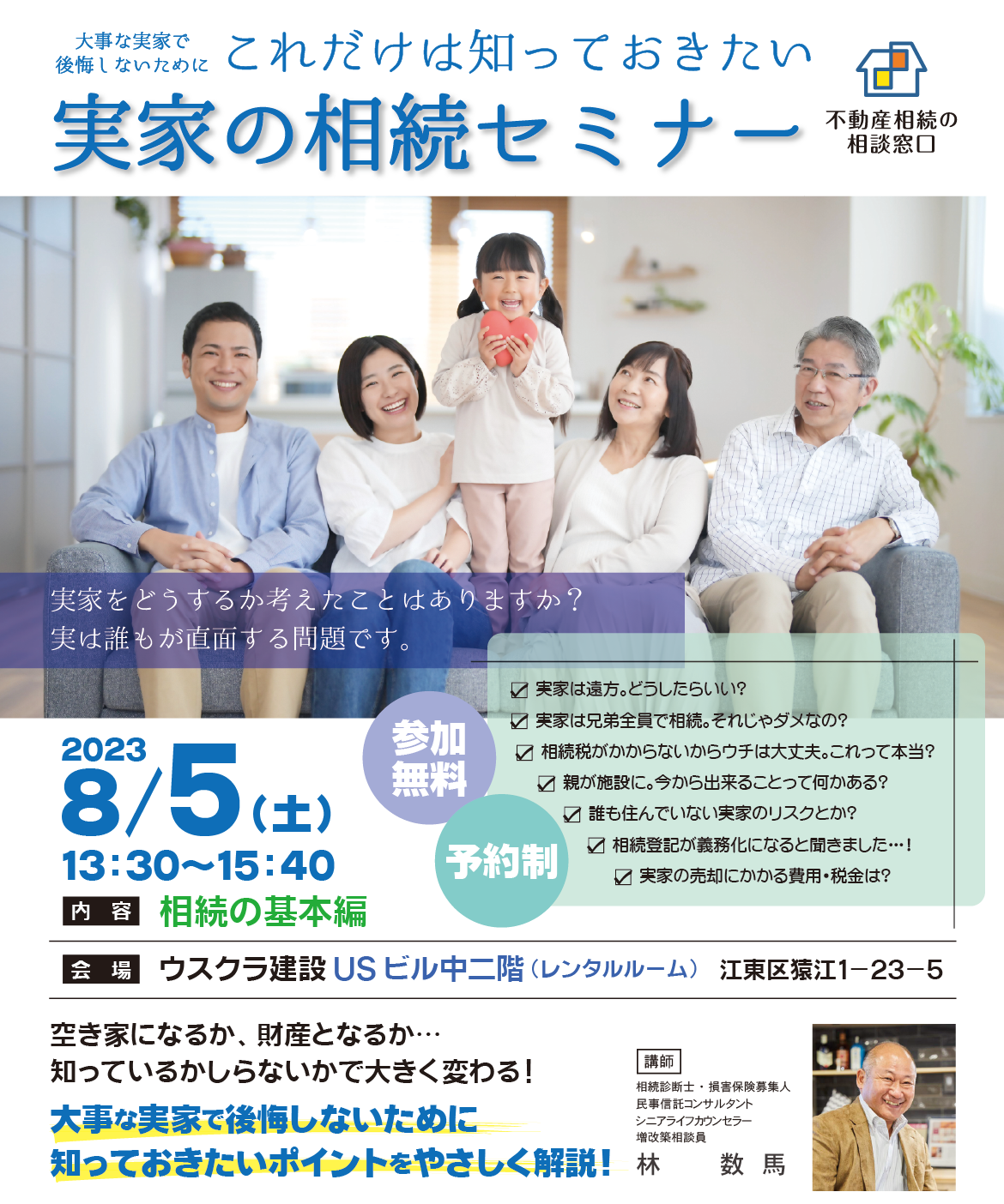 【終了しました】8月5日(土)に【実家の相続セミナー】を開催いたします