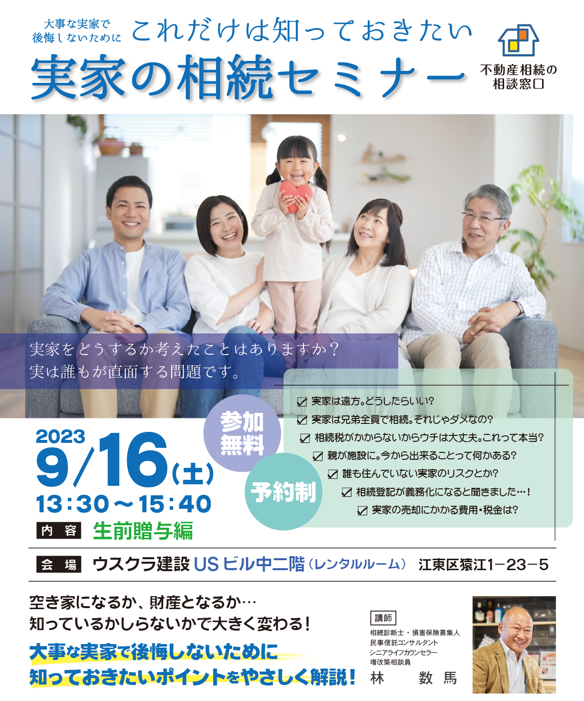 【終了しました】9月16日(土)に【実家の相続セミナー】を開催いたします