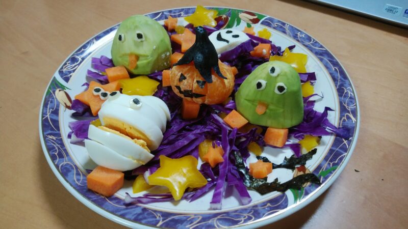 ゆで卵のミイラ、アボカドのモンスター、お豆腐のお化け(笑)