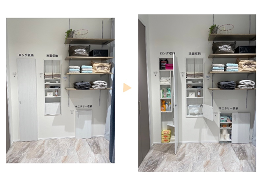 水回りの目立たせたくないゴミ箱や、掃除道具をしっかり隠せて