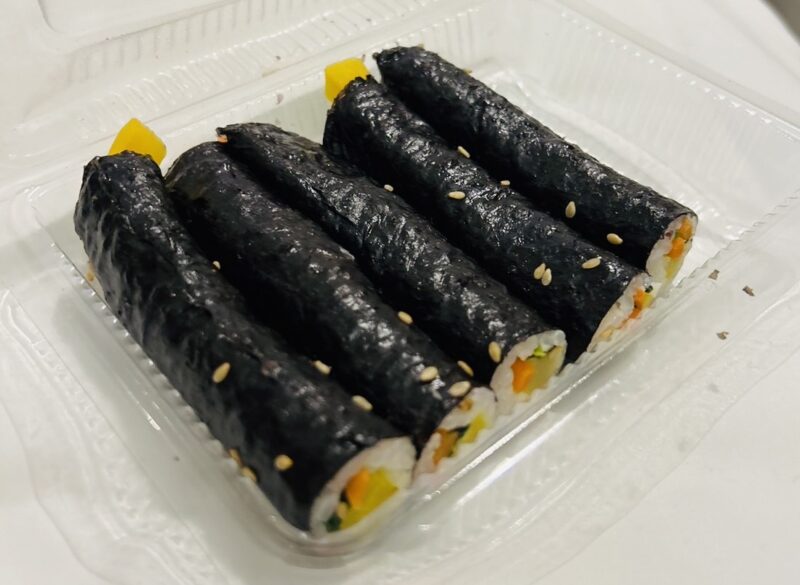 麻薬キンパと呼ばれる海苔巻きで人参・たくあんなどが入っており