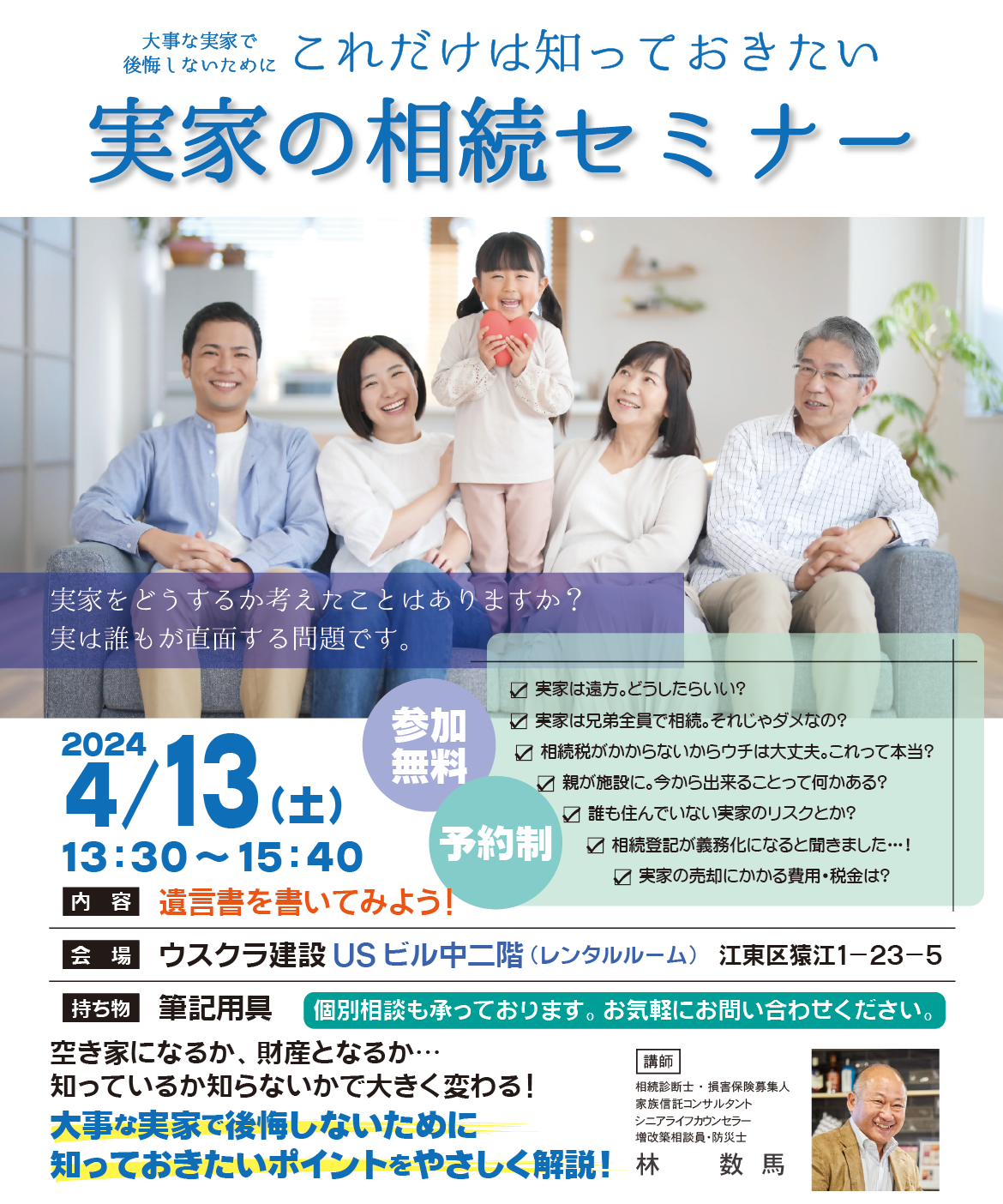 【終了しました】4月13日(土)に【実家の相続セミナー】を開催いたします