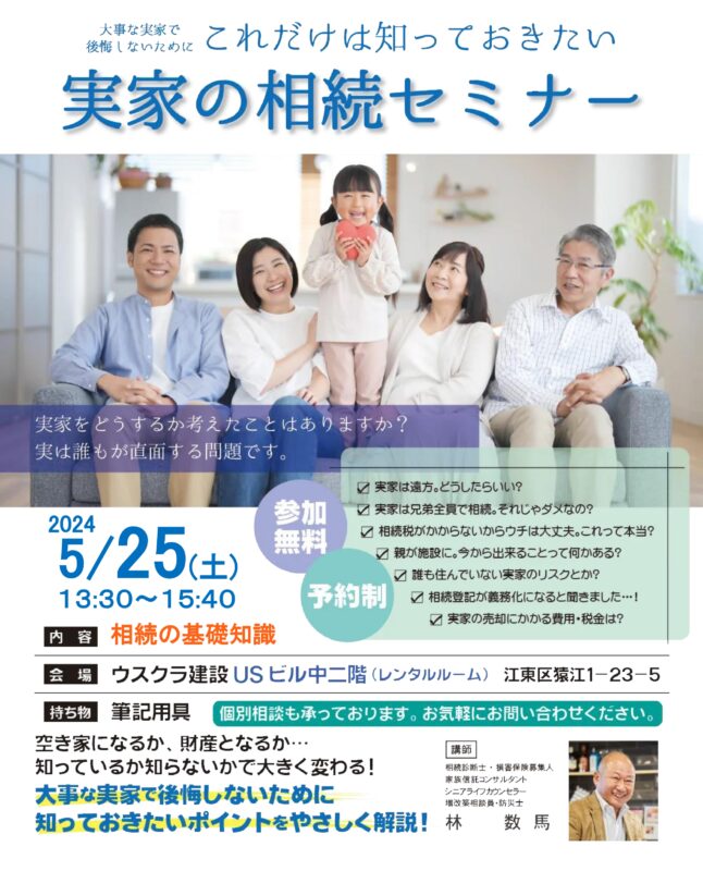 5月25日(土)に【実家の相続セミナー】を開催いたします