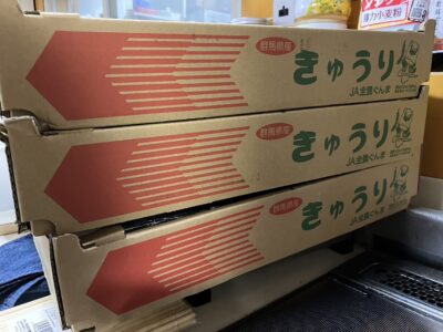 今日の目玉は~きゅうり!!朝箱いっぱいのきゅうりが届きました!