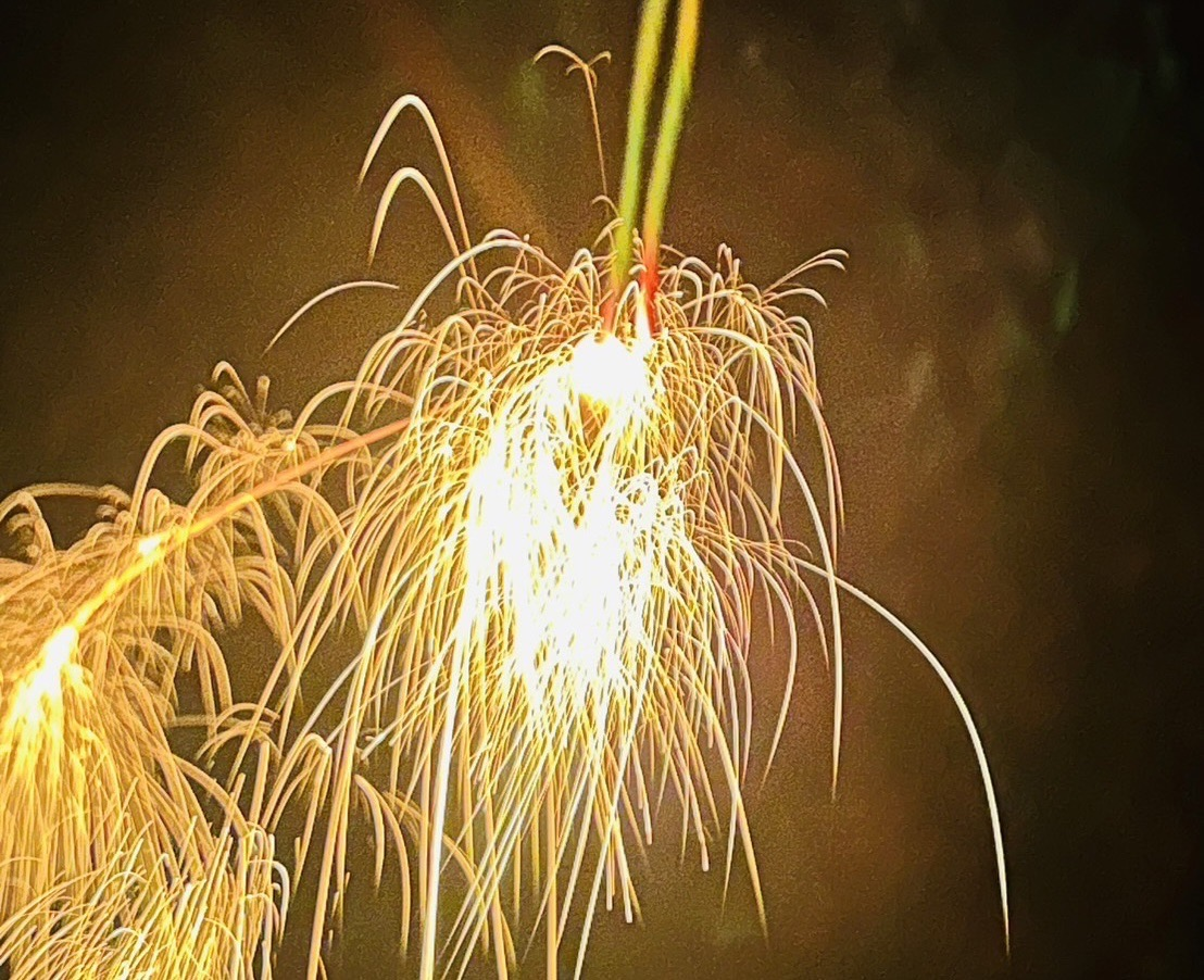 線香花火を2本持ちでやってみたら途中でくっついて長い間落ちなかったです![]()