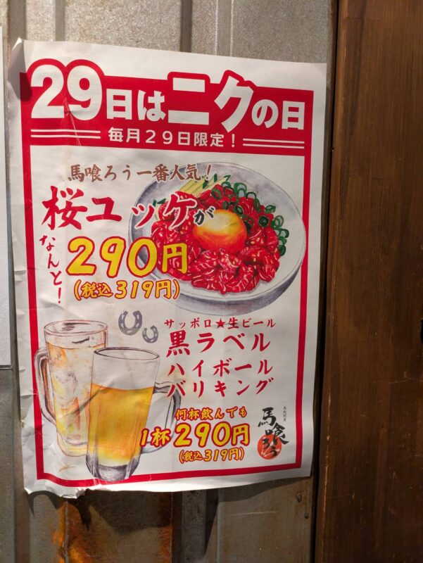 ≪馬喰ろう≫ってゆー大衆馬肉酒場です。バクロウと読みます。