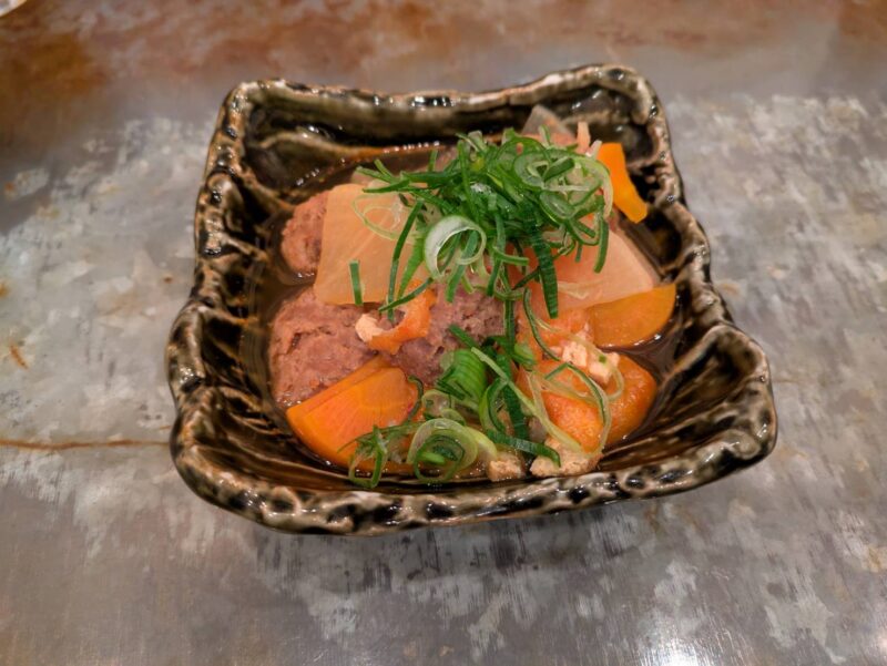 お通しは馬肉つみれ鍋みたいなやつ↓