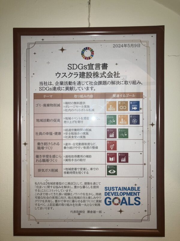 この度、ウスクラ建設はSDGs宣言をしました! 「SDGs宣言って何?」となっている方も多いと思います!私もSDGs自体は知っていましたが、「SDGs宣言」は社長に教えてもらうまで知りませんでした SDGs宣言とは名称の […]