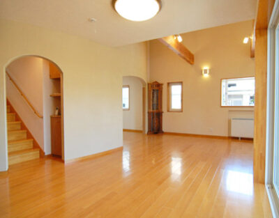 やわらかい曲線を描くアールの壁が美しいリビング 市川市 木造・外断熱・二重通気工法の家