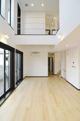 広々とした玄関、大きな吹き抜け、フロアの床と段差のなく外に出られるウッドデッキ張りのバルコニーがご希望でした。