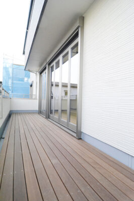 また、バルコニーのウッドデッキも部屋のフロアと段差なく外に出ることが出来るので、使い勝手抜群です。