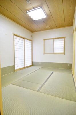 光が差し込む明るい和室には、お施主様のご希望で掘りごたつを設けました。
