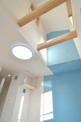 クライミングが趣味のお施主様。気軽に自宅でお子様とボルダリングが楽しめます。