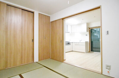 親世帯は2DK、子世帯は2LDK、玄関設備2か所完全分離型二世帯住宅。