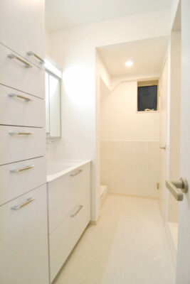 タオルや着替えなどをたくさん収納できる洗面所です。