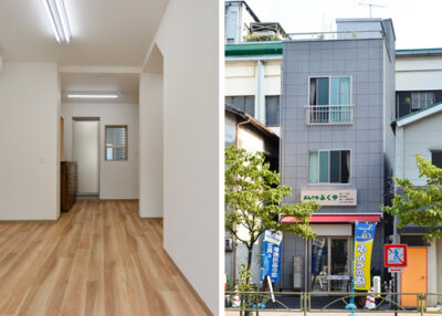 道路の拡幅に伴って建て替えをされることになり、1階は店舗、2・3階はご夫婦が住まわれる店舗併用住居ご依頼いただきました。