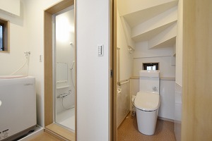 階段下にトイレを設置して、無駄なく空間を利用しました。