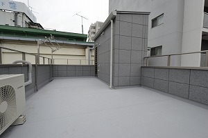 都内の狭小地で敷地が狭く庭が取れないため、屋上は緑化できる防水を施工しました。