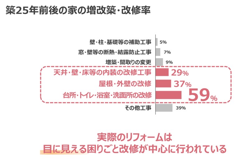 将来を考えると耐震耐久や断熱が重要です。ですが実際には目に見える部分のリフォームが優先されがちです。