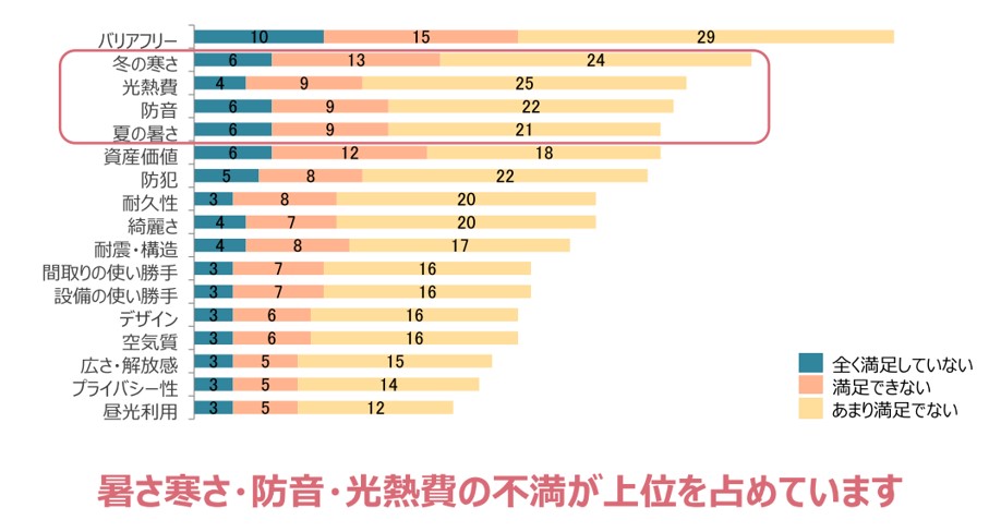 冬の寒さや夏の暑さは、今の住環境に慣れていると気がつかない不満かもしれません。