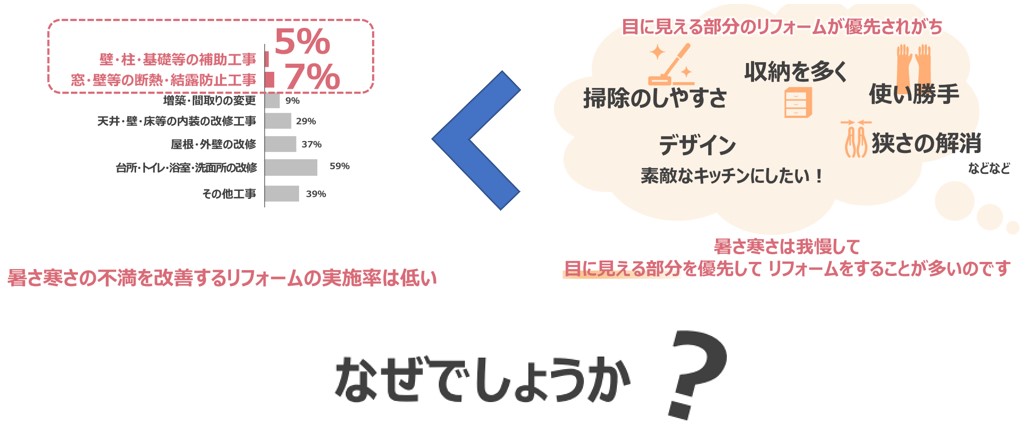 既存住宅の断熱性能を向上させることができるということを知らないということも理由かも知れません。