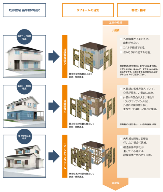 建物の築年数によって、断熱リフォームの方法を選ぶことができます。
