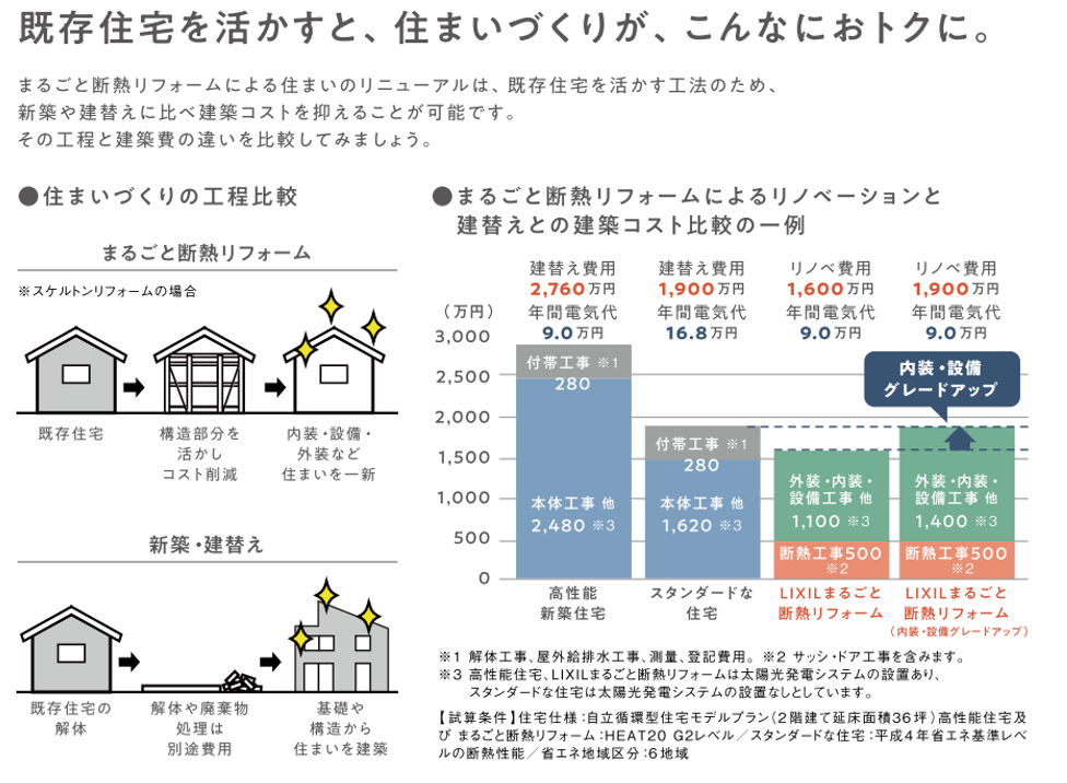 まるごと断熱リフォームのように性能向上を目的としたリフォームは建物構造を改修するために、