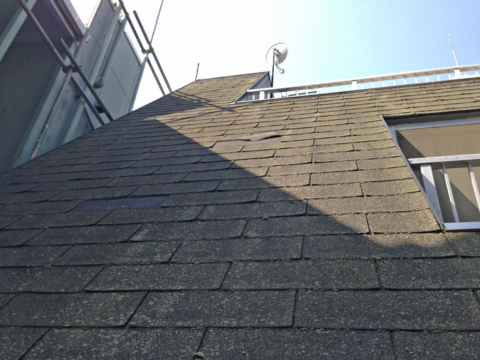 斜壁のアスファルトシングル葺きは、リフレッシュ工法で重ね葺きしました。