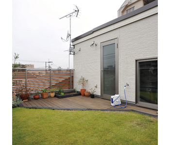 ご主人「勧められてつくってよかったですよ。芝生にアウトドアチェアを置いてビールを飲んでる時間は最高ですね。デッキでは家内がガーデニングをやってます」